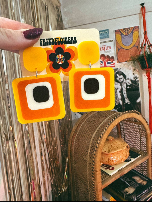 boucle d'oreille rétro vintage Groovy des années 70 - La GuimbardeBoucles d'oreilles Groovy des années 1970 d'inspiration rétro Ruby Tuesday Square