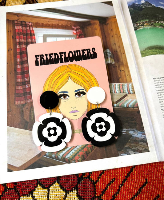 boucle d'oreilles rétro vintage Groovy des années 70 La GuimbardeBoucles d'oreilles puces fleur rétro groovy
