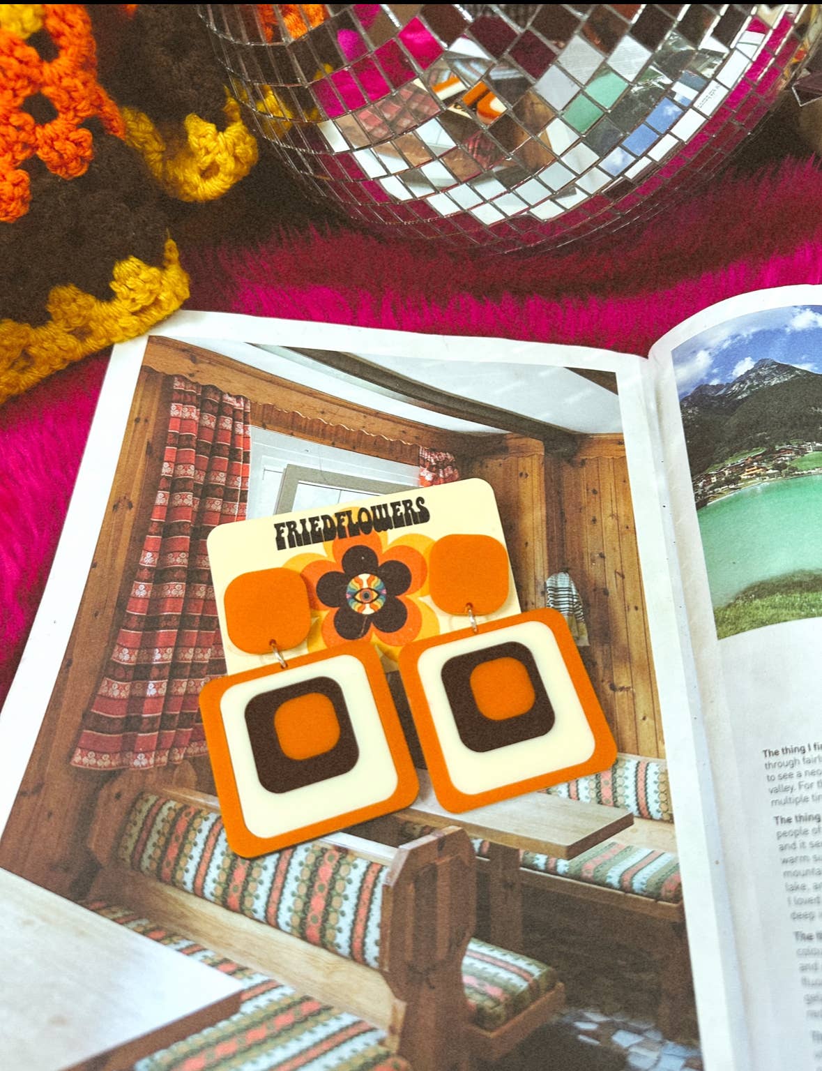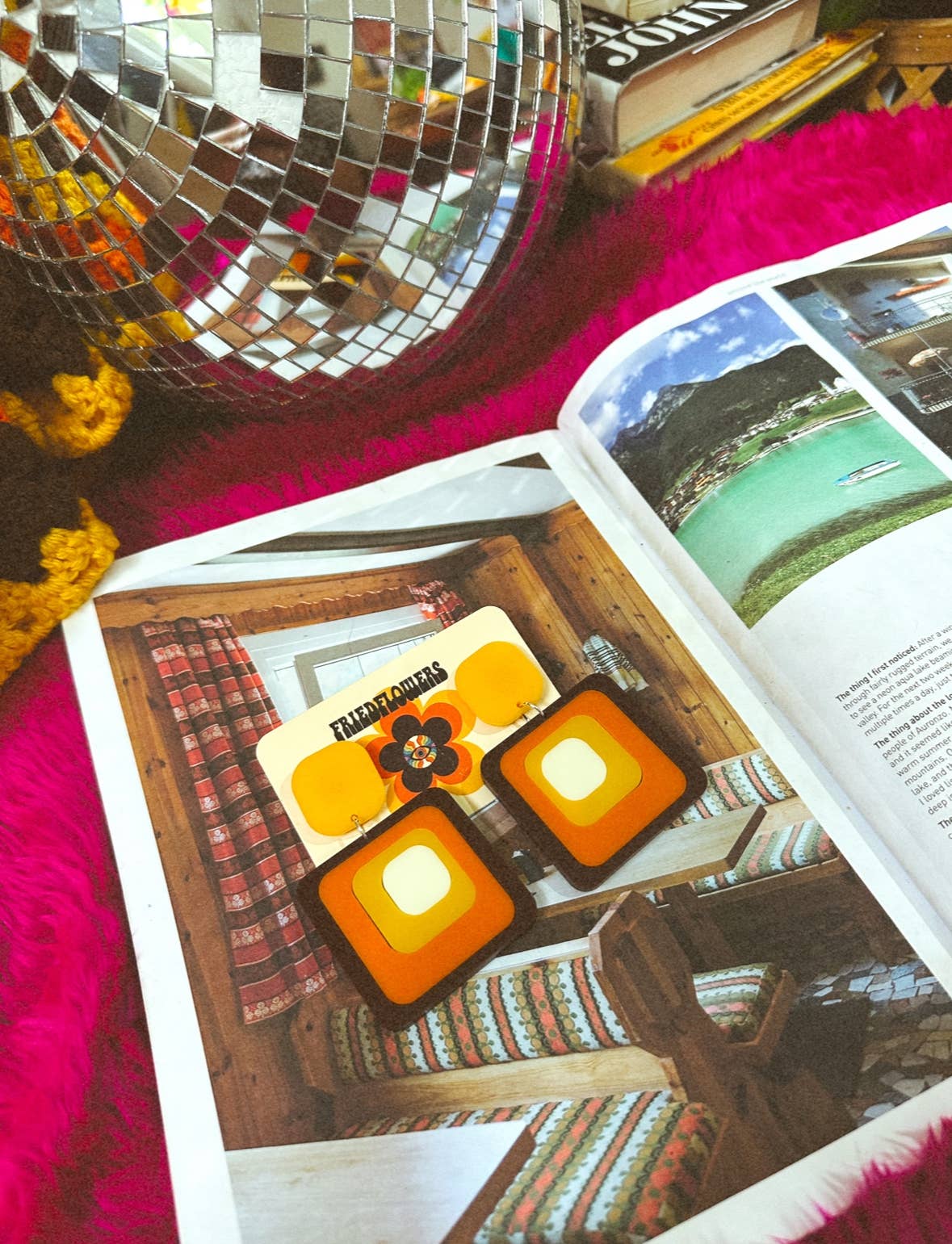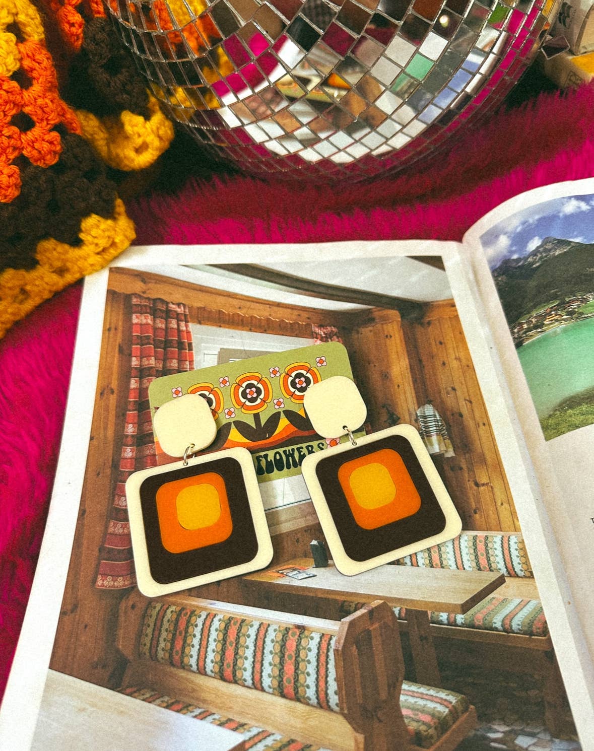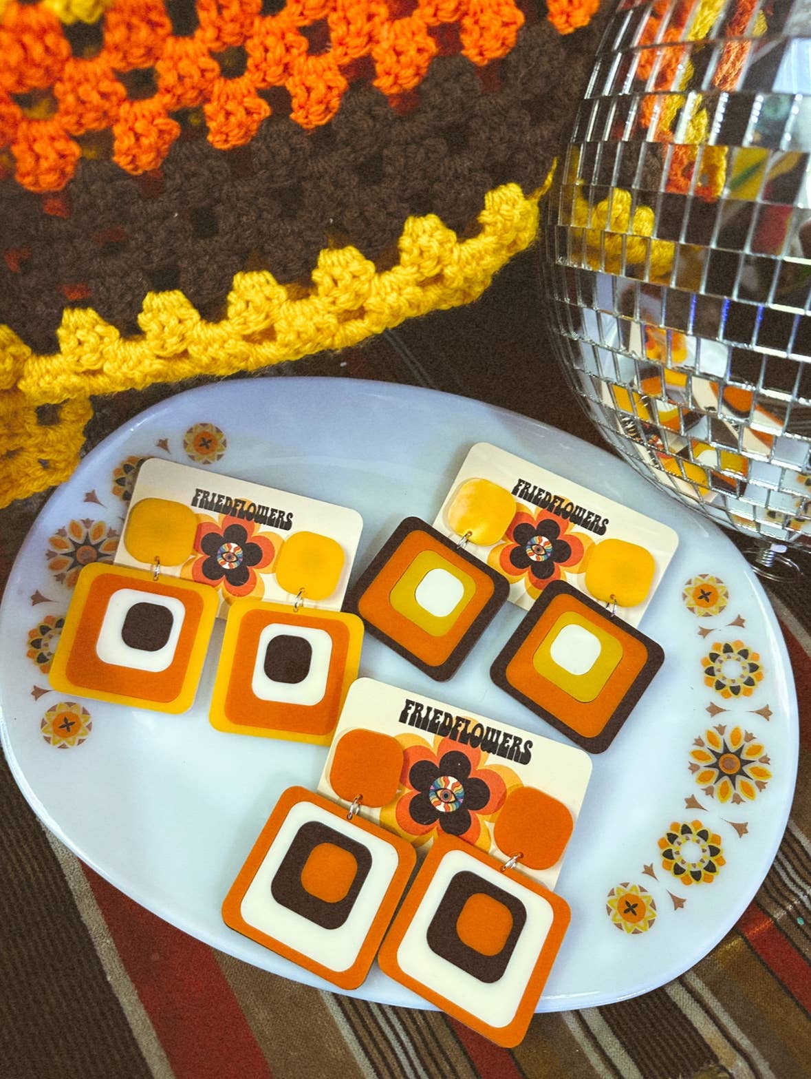 Boucles d'oreilles Groovy des années 1970 d'inspiration rétro Ruby Tuesday Square