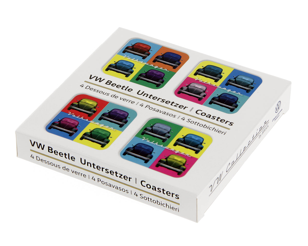 Set de 4 sous-verres VW Coccinelle au design unique avec des motifs avant VW Beetle de différentes couleurs. Ajoutez un peu de créativité à vos barbecues ou les repas entre amis. Fabriqué à partir de liège et doté d'un revêtement en MDF, ils sont robustes et élégants !